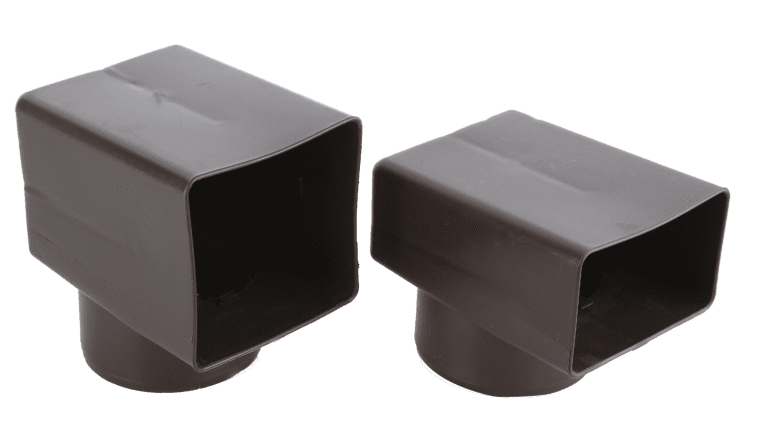 Horizontal spigot is used to connect to a horizontal drain outlet, allowing water to dispersing water into a hopper or similar.